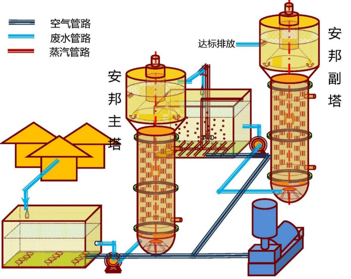 Anbon Bio-reactor is consist of two series connected reactors. The main tower removes the most nitrate from the wastewater with fast growing bacteria, while the secondary reactor further removes the remaining nitrates with slow growing bacterial. The A/O system set after Anbon Bio-reactor provides an advanced treatment and ensures the discharge reach the standards.